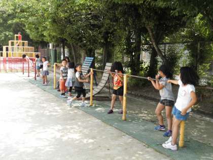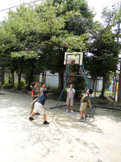 中には,バスケットボールのゴールにシュートしている子たちもいました。