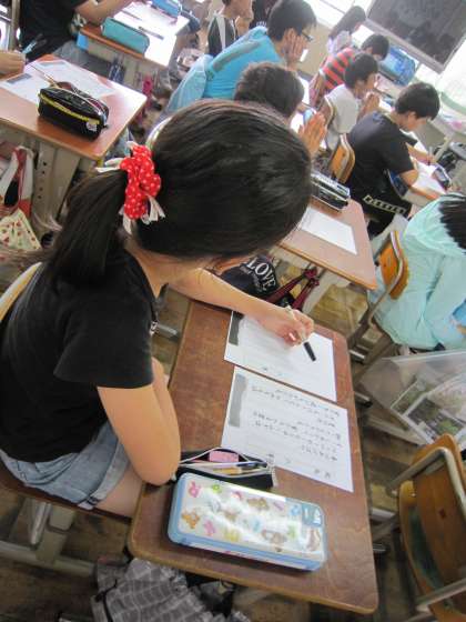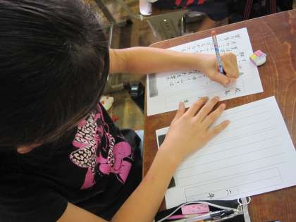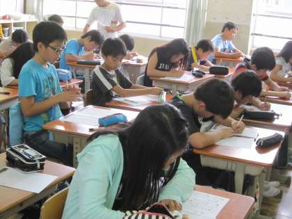 6年2組では,フェルトペン(サインペン)を使って書く硬筆書写に取り組んでいました。
