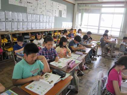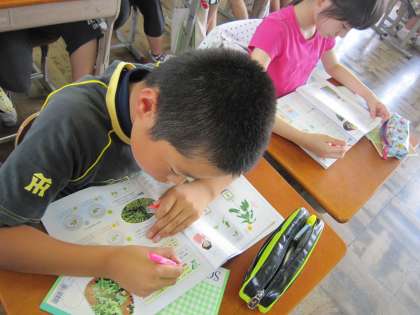 5年1組では,理科で発芽についての学習を終え,教科書と映像資料を使ってまとめをしていました。