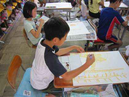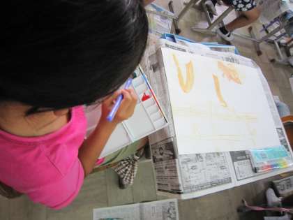 1組では,コンテで下絵を描いた後,絵の具で色を付けていました。