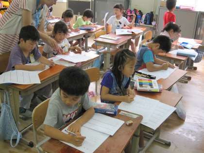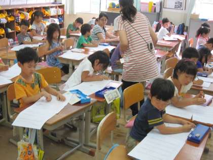「これは( )です。( )は・・・」と( )に言葉を書きこんでいました。