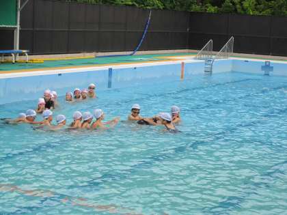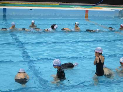 水の中で,だるま浮きや大の字になって浮いたりしていました。