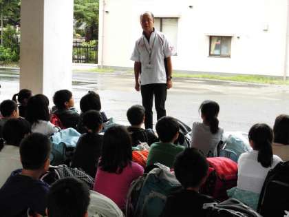 学校長より子ども達に「山の家では,素敵な姿,成長する姿を見せてくださいね。成長する3泊4日にしましょう。」と話しました。
