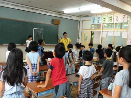 4年2組では,朝の会で「元気の出る歩き方」の話を担任がしていました。