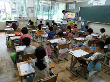 1年2組では,国語で学習した「くちばし」のテストをしていました。