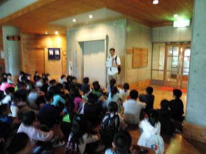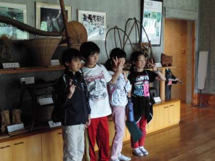 激しく雨が降っているため,ネイチャービンゴに代わって館内オリエンテーリングをすることになりました。