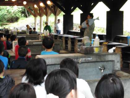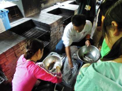 次の活動は魚つかみでとった魚をさばいて焼くことと野外炊事第2弾「豚汁」作りです。