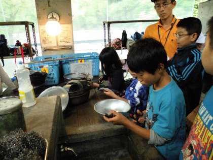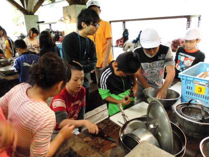 山の家の所員の方に魚のさばき方と上手な焼き方を教えてもらっていざ挑戦!