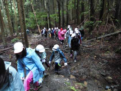 途中大きな木が倒れていたりきれいな川が流れていたりして森の中を冒険している雰囲気を味わいました。