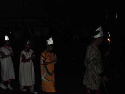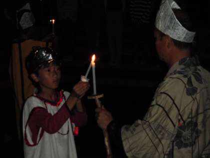 「キャンプファイヤー」は雨のため「キャンドルフャイヤー」に変更になりました。火の神の登場です。