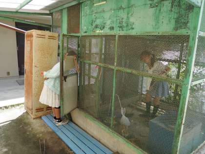 うさぎもきれいにしてもらったあと,新しい餌をもらってうれしそうです。