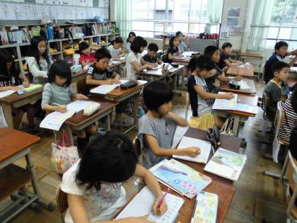 4年2組では,漢字ドリルを使って漢字の練習をしていました。
