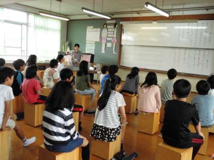 6年2組では,スクールサポーターの先生と一緒に音楽をしていました。