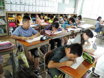 5年生は,山の家での宿泊学習の二日間の代休を終え,今日から久しぶりの教室での学習となりました。1時間目には,学年集会を開いて,山の家のふりかえりをしていました。