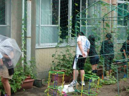 今日は,つるが巻き付いていない所を巻付け直しました。