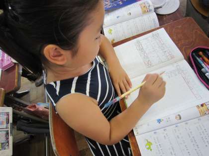 2年1組では,算数で「1000までの数」の学習を終え,「れんしゅう」というページを使って復習していました。