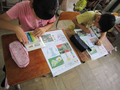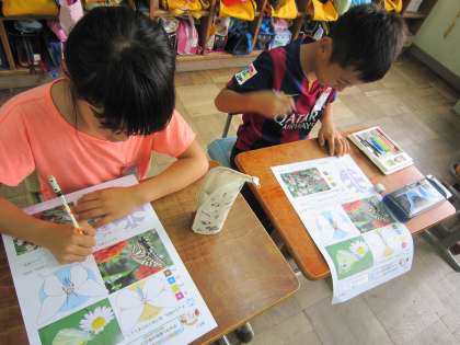 3年1組では,理科で学習したチョウや植物の体のつくりについて復習していました。