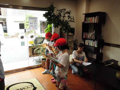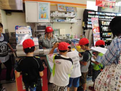 町探検に行ってきました。お店の人に,緊張しながら質問をしていました。