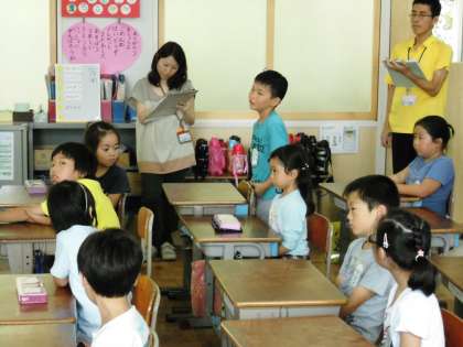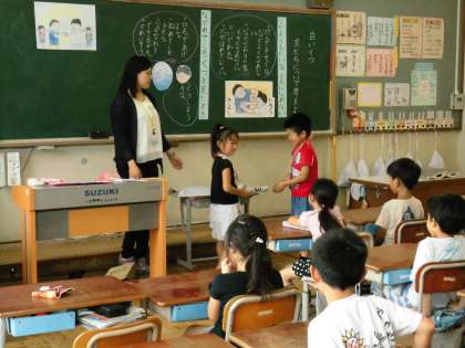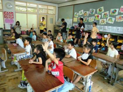 2年1組では,道徳で「白いくつ」という資料を使って話し合っていました。