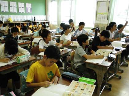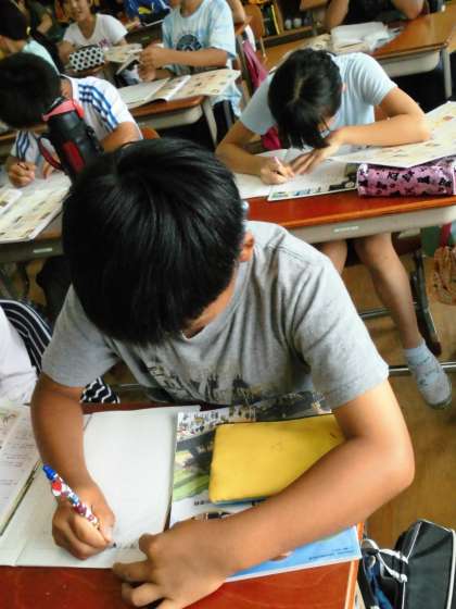 6年1組では,社会科で「三人武将について」資料集などで調べていました。