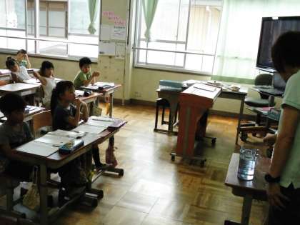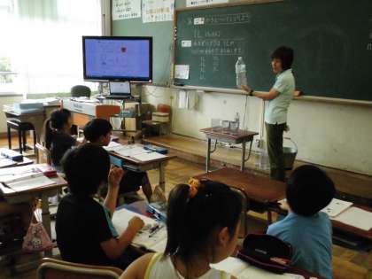 2年1組では,「水のかさは1Lがいくつ分あるかで表す」ということをみんなで確かめていました。