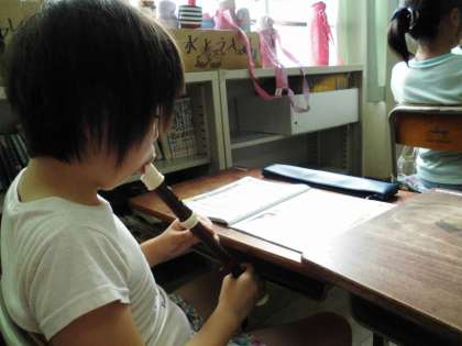 3年生と交流してリコーダーを練習しました。