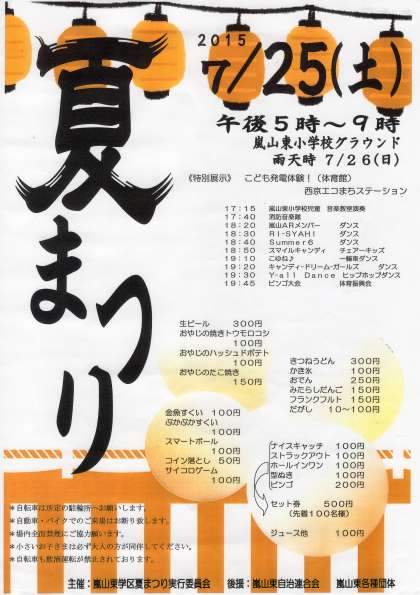 嵐山東学区『夏まつり』について〜PTA本部より〜