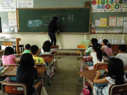 2年2組では,漢字の小テストを終え,返す前に間違いの多かった漢字について説明していました。