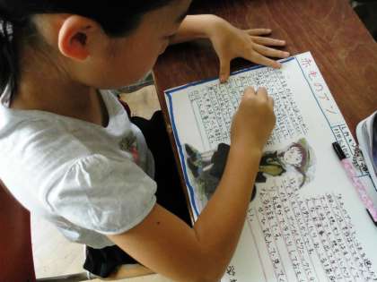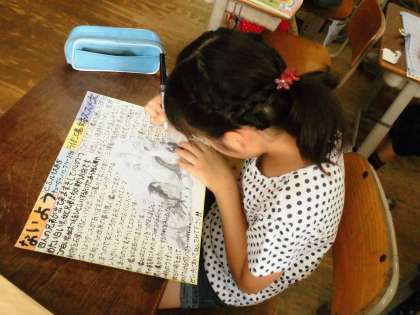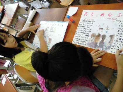4年1組では,お気に入りの本を紹介するポスター作りに取り組んでいます。今日の様子を見ていると完成間近かだなぁと感じました。