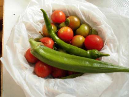 トマト・オクラ・枝豆の収穫です。おいしそうでしょう。