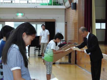 長い夏休みが終わり,いよいよ前期の後半が始まりました。校長先生からは高槻の事件を受けて「自分の命は自分で守ろう」というお話や「当たり前の事ができるようになってきたので,もう一段階上のレベルをめざそう」というお話がありました。その後,夏休みに活躍した人たちへの表彰がありました。