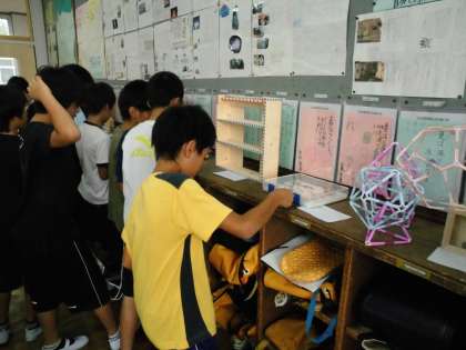 5年生の教室では,作品をロッカーの上に飾っていました。