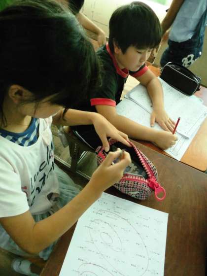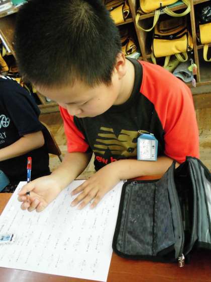 5年1組では,夏休みの練習の成果を確かめるテストを行った後,テスト返しをしていました。子ども達は返された後,間違ったところを直したり練習したりしていました。こうすることで,正しい漢字が正確に覚えられていきます。