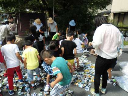 今日は,アルミ缶回収の日です。