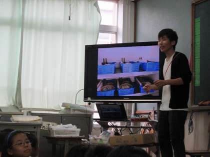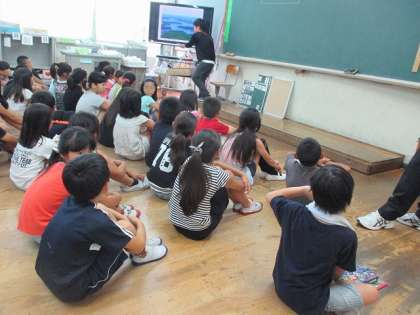 4年生といっしょに,みさきの家の写真を見たり話を聞いたりしました。