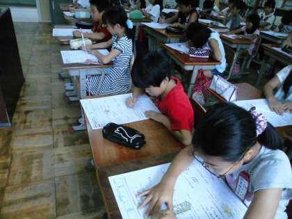 4年2組では,算数の「前期まとめテスト」を実施していました。
