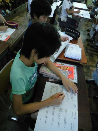 答え合わせをみんなでしながら,正しい答えを求めるためのポイントを指導していました。