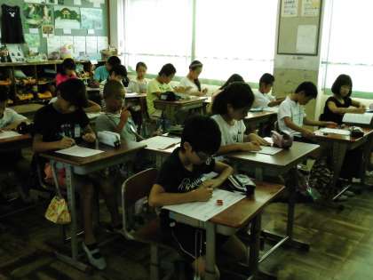 5年1組では,算数の時間に復習プリントに取り組んでいました。