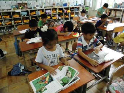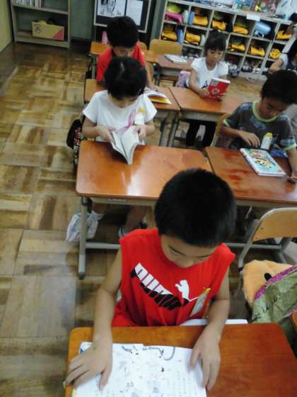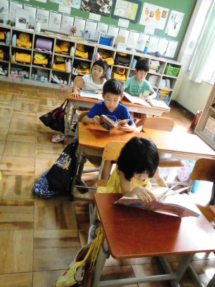 1年2組では,図書室から帰ってきて,早速借りた本を読んでいました。
