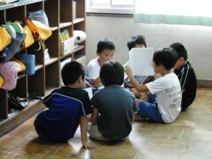 2年1組では,見直しを終え,それぞれのグループで発表していました。