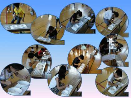 どのチームも懸命に豆を左から右にうつしていました。
