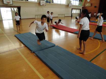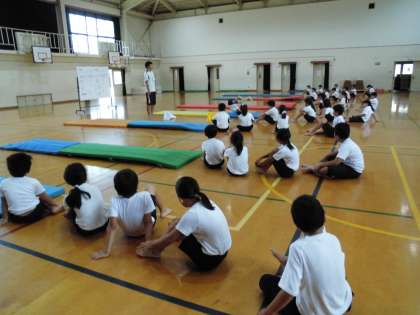 マット運動の目当てをしっかり聞いて,それぞれが自分の技に取り組みました。
