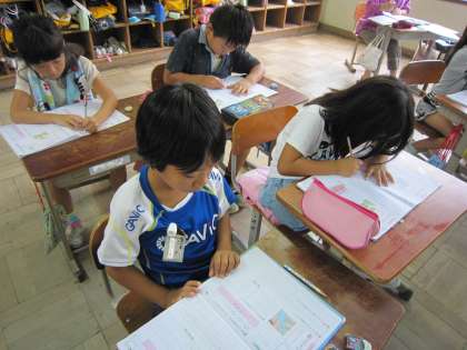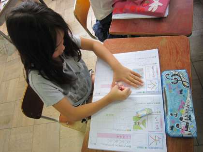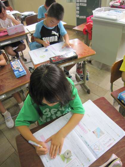 2年2組では,新しい漢字「矢」と「谷」の練習をしていました。