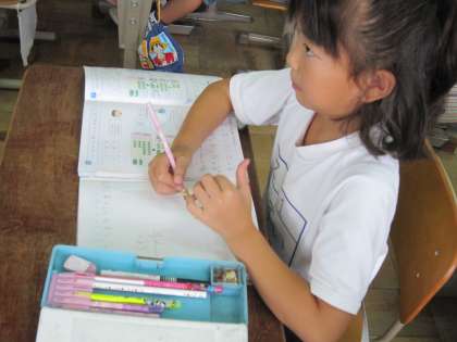 今日は,2回くり下がりのある筆算の学習です。くり下がりがあると困ってしまう子が増えます。これから,自信をもってくり下がりができるように練習を重ねていきます。