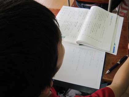 漢字2文字で成り立っている熟語を,「似た意味の組み合わせ」「意味が対になる組み合わせ」など分類しようとしていました。