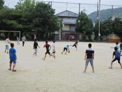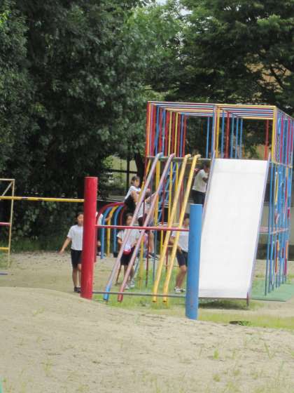 中間休みに運動場では,ドッジボールや総合遊具で遊んでいました。