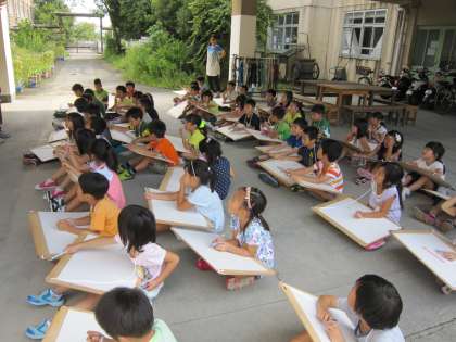 1年生は,図工で「かげをうつして」に取り組んでいます。