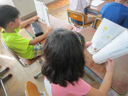 2年1組では,国語で「ののはな」という詩の音読をしていました。