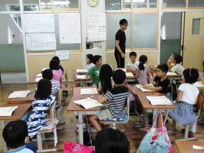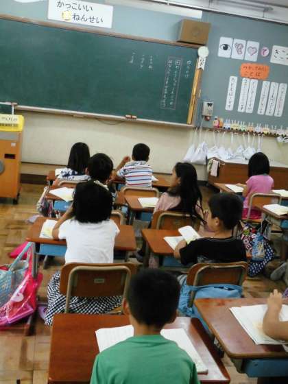 1年2組では,「4の登場人物が話したことを考えよう」というめあてで学習していました。