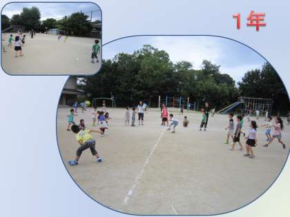 1年生は,あてられると外野に行くというルールがピンと来ていない子もいるようで,あてられると同時に担任から「外野へ行くよ。」という声がかけられる場面もありました。